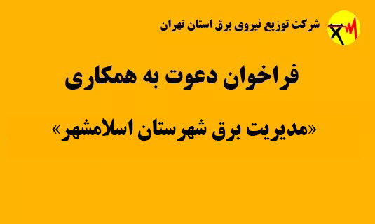 فراخوان دعوت به همکاری جهت «مدیریت برق شهرستان اسلامشهر»