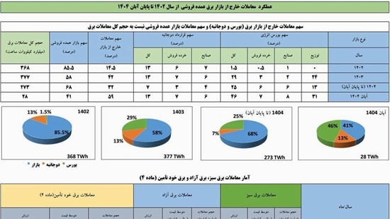 تحقق هدف برنامه هفتم توسعه در آبان ۱۴۰۴؛ معاملات خارج از بازار برق در آبان به مرز ۶۰ درصد کل معاملات برق رسید