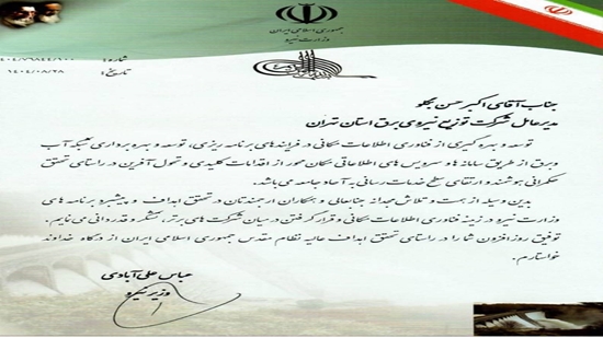 تقدیر وزیر نیرو از شرکت توزیع نیروی برق استان تهران