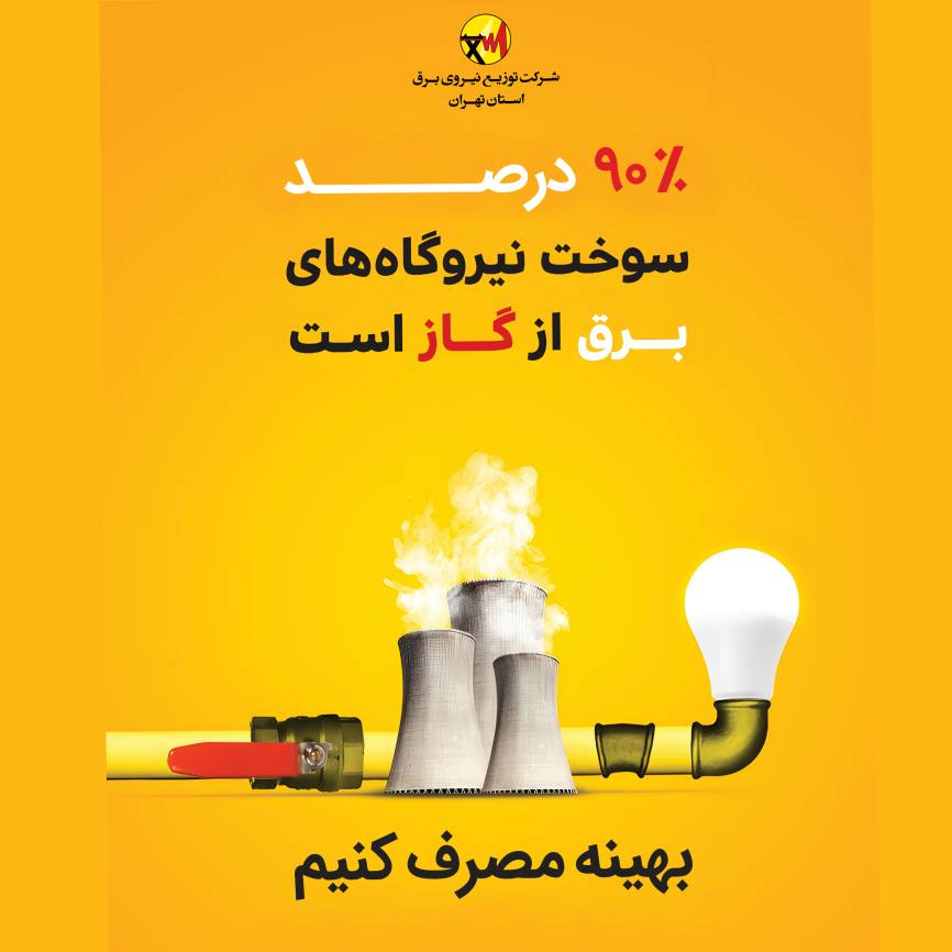 به گزارش روابط عمومی شرکت توزیع نیروی برق استان تهران، ۹۰درصد سوخت نیروگاههای برق کشور از گاز تأمین میشود بهینه مصرف کنیم.