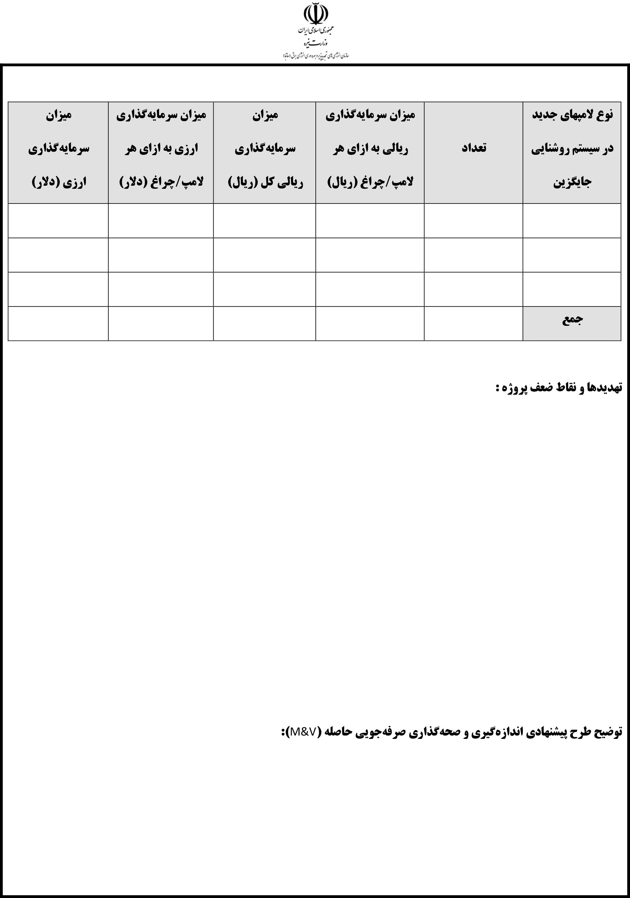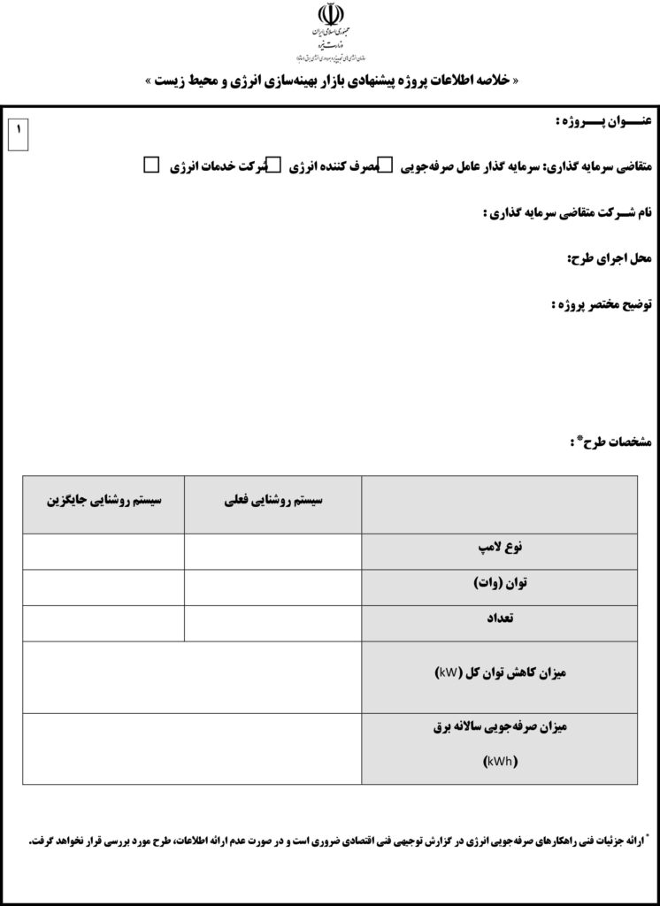 یادآوری می شود پس از اجرای طرح به میزان معادل انرژی صرفه جویی شده، اوراق صرفه جویی انرژی توسط شرکت توانیر برای سرمایه گذار صادر خواهد شد و اوراق مذکور قابل عرضه به مشترکان و خریداران برق در بورس انرژی خواهد بود.