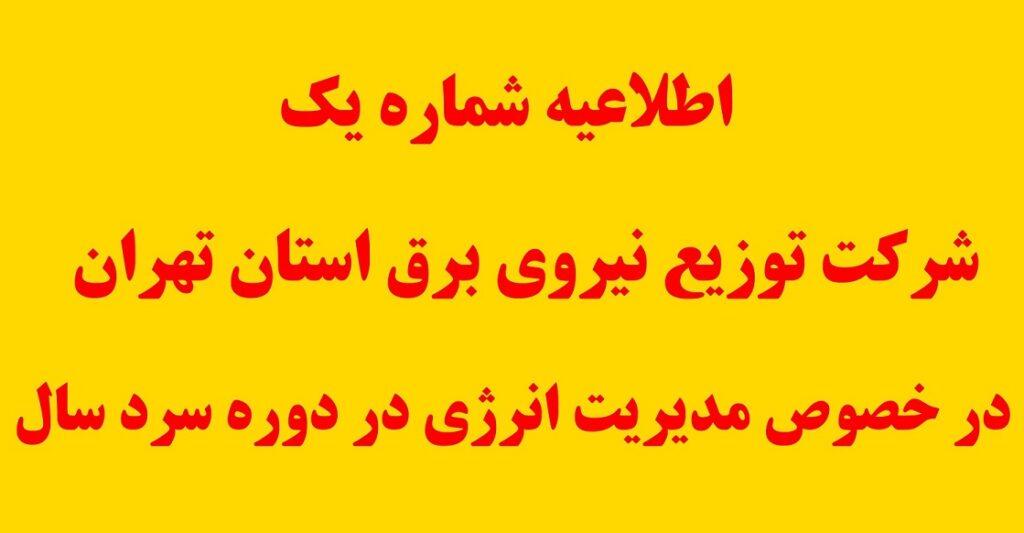 اطلاعیه شماره یک شرکت توزیع نیروی برق استان تهران درخصوص مدیریت انرژی در دوره سرد سال
